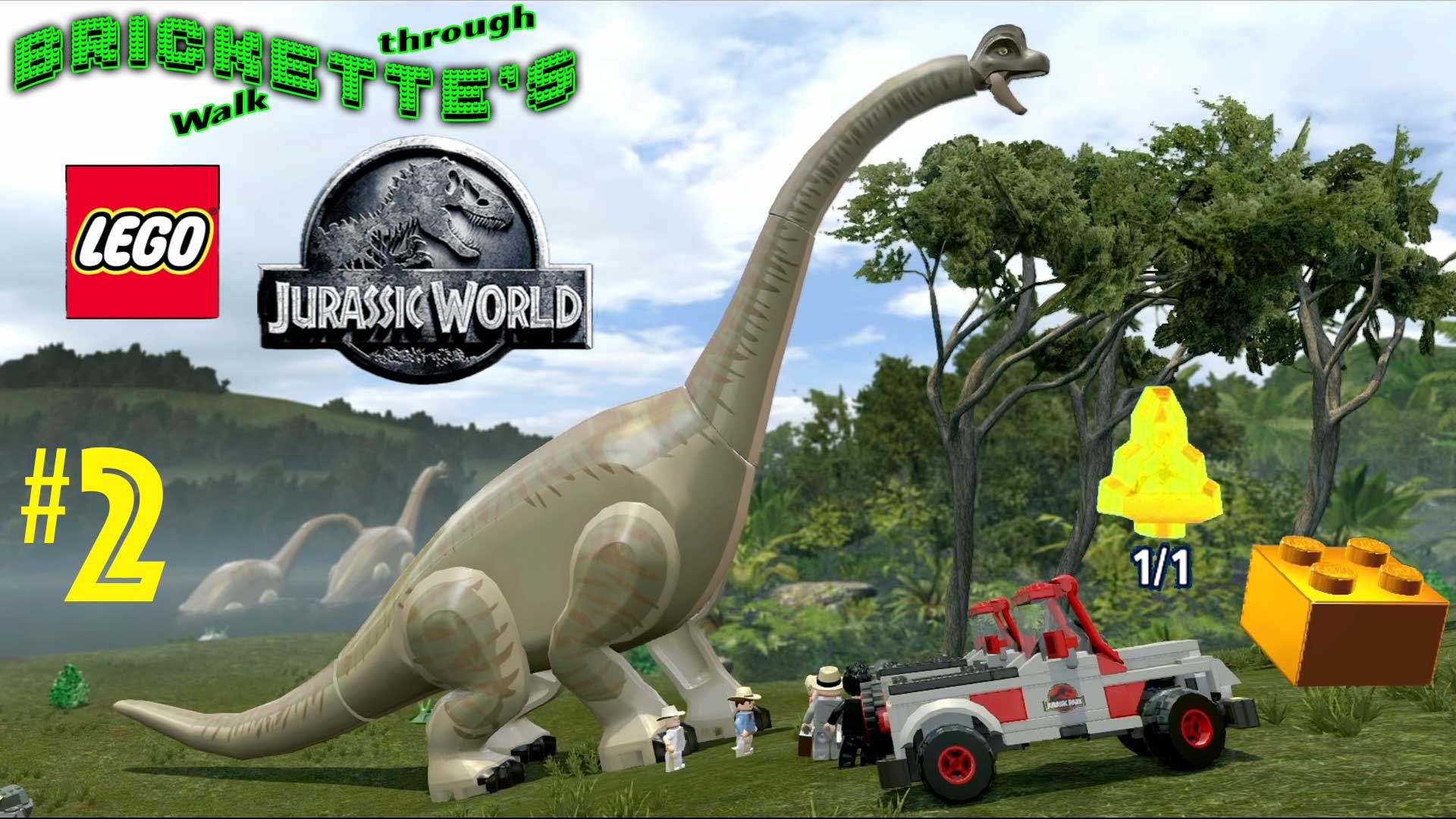 Walkthrough of LEGO Jurassic World Part 3, Jurassic Park Level 3 (Park Shutdown) story mode with the Score x8 (Studs x8) Red Brick and the Dilophosaurus (the spitter) Amber.